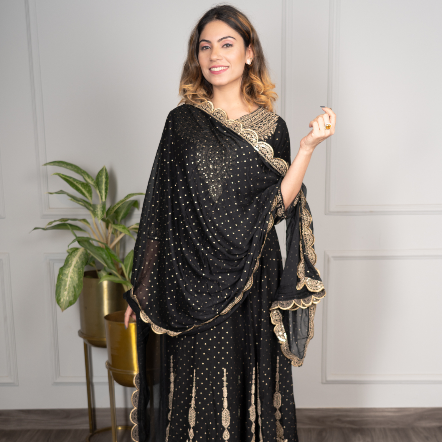 Welcome to Indian Kudi which embraces tradition with a touch of contemporary flair, celebrating culture, heritage, and the timeless allure of ethnic fashion. We at Indian Kudi understand that for every woman, ethnic wear isn't just about clothing β it's a statement, a connection to one's roots, and a reflection of individual style. That's why we take immense pride in curating a diverse and captivating collection of designer, ready-to- wear ethnic fashion that caters to a myriad of tastes and occasions. From dresses to designer suits, Kurti sets to Co-ordβs, we have it all to revamp your wardrobe. Not to forget our stylish footwear to complement your ensemble promising you to be the talk of the town with your fashion quotient. Imagine the luxurious sensation of slipping into a velvet suit set, the fabric enveloping you in a cocoon of opulence and comfort. Or perhaps you're captivated by the timeless allure of Anarkali suits, their ethereal charm casting a spell of enchantment wherever you go. Or, amidst the array of exquisite ensembles, finding a treasure trove of women's kurta sets and Co-ord sets waiting to adorn you with elegance and charm. Imagine the timeless appeal of slipping into a meticulously crafted kurta set, each piece designed to accentuate your grace and style. Whether you prefer the traditional charm of intricate embroidery or the contemporary allure of modern cuts and silhouettes, our collection of women's kurta sets offers something to suit every taste and occasion. And then there are our Co-ord sets, a symbol of effortless chicness and coordinated elegance. Picture yourself stepping out in a perfectly matched ensemble, where every piece complements the other in colour, style, and texture. Whether you're dressing for a casual outing or a special event, our Co-ord sets ensure that you make a statement wherever you go. Whether your heart beats for the classic elegance of traditional kurta sets or you're drawn to the contemporary chicness of trendy Co-ord sets, we have something that speaks to your unique sense of style, making you stand out from the crowd. As you explore our curated selection, you'll be transported to a world where colours dance, textures beguile, and designs mesmerize. It's a symphony for the senses, where every garment tells a story and every wearer becomes a storyteller, weaving their own tale of elegance and grace. So why not step into our world and experience the magic for yourself? Whether you're dressing up for a special occasion or simply indulging in a moment of self- expression, Indian Kudi is here to be your companion on your journey of style and sophistication. Welcome to a world where elegance knows no bounds, and every ensemble is a work of art. We play with styles and cuts, hues and colours curating each garment with dedication, quality and attention to detail, and above all, your satisfaction ensuring that you not only look stunning but also feel comfortable and confident in what you wear. From the rich hues of our fabrics to the intricate embroidery and embellishments, every element is thoughtfully chosen to create a masterpiece that is sure to turn heads. What truly sets Indian Kudi apart is our unwavering commitment to quality, craftsmanship, using the finest fabrics and embellishments, ensuring not just style, but also comfort and durability. Our dedication to quality extends beyond our products to our customer service, where our friendly team is always ready to assist you, ensuring a seamless shopping experience from start to finish.